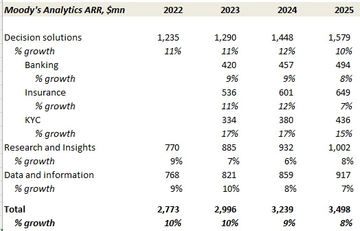 Moody’s Analytics is composed of three sub-segments: Decision Solutions, Research & Insights, and Data & Information: