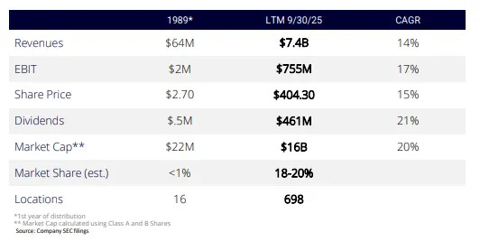 Watsco exhibits some of the classic behaviors of fan-favorite serial acquirers. It eschews bank-led auctions, scouts healthy distributors (”regional superpower businesses”) with strong local contractor relationships for years, sometimes decades, and presents itself as a “forever home” for owners who themselves or their parents or their parents’ parents built the business from scratch and care about what happens to employees and contractors after they’re gone. From Thoughts on Watsco and some businesses like it:
